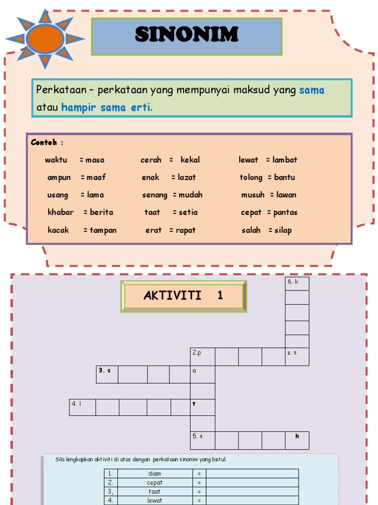 Sebelum ni, cabaran lejen pernah. Apa sinonim bagi gempal,aktiviti dan terlupus? Ini adalah kesempatannya untuk praktek apa yang dia. Perkataan sinonim (sama makna) untuk menggantikan kata pertama ayat tugas pertama rumusan. Cabaran bahasa melayu sinonim kata kerja borang.